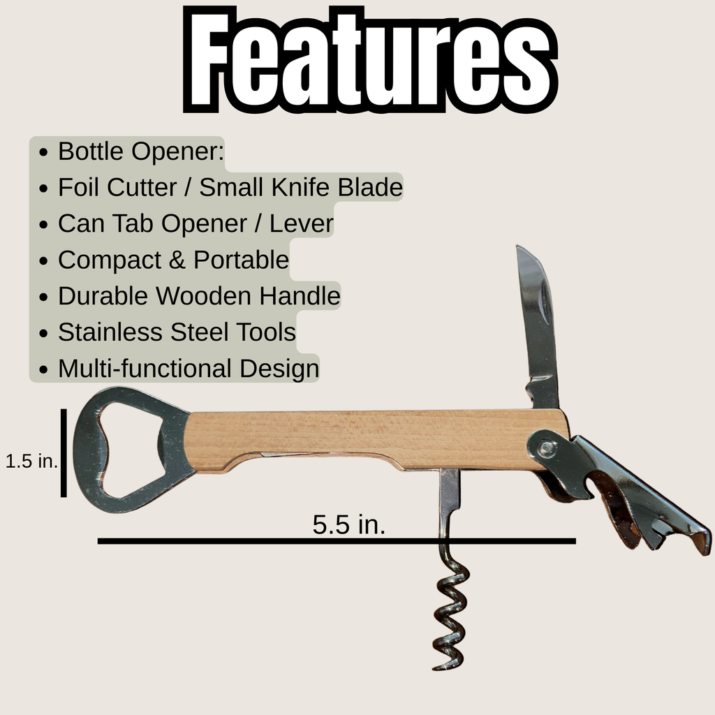 All-in-One Design – Features a corkscrew for wine bottles, a sturdy bottle opener for caps, and a foil cutter for clean, easy prep.