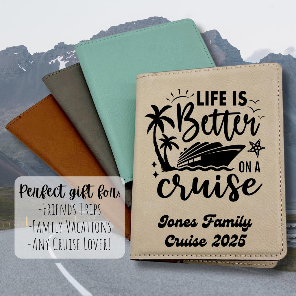 Personalized Cruise Passport Holder - Custom Engraved Travel Cover - Family, Bachelorette, Girls Trip Gift